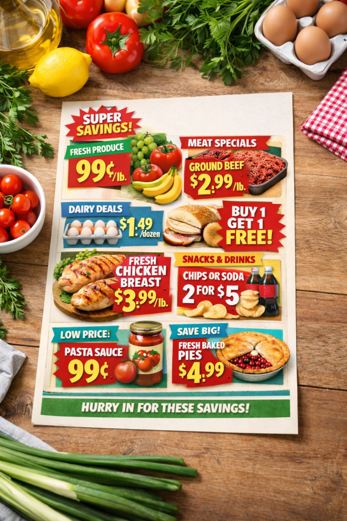 Check weekly sales before shopping and plan meals around discounted items. Just make sure you’re not buying something only because it’s on sale. The biggest savings come from purchasing items you already planned to buy—at a lower price.